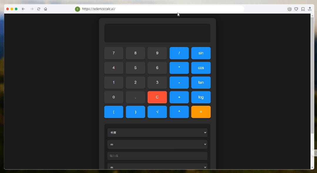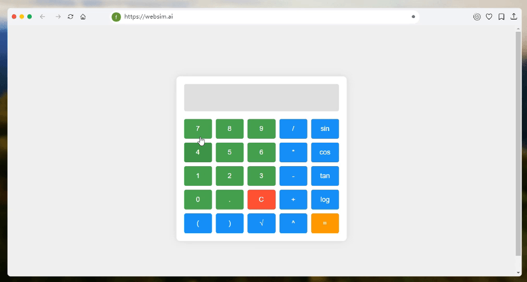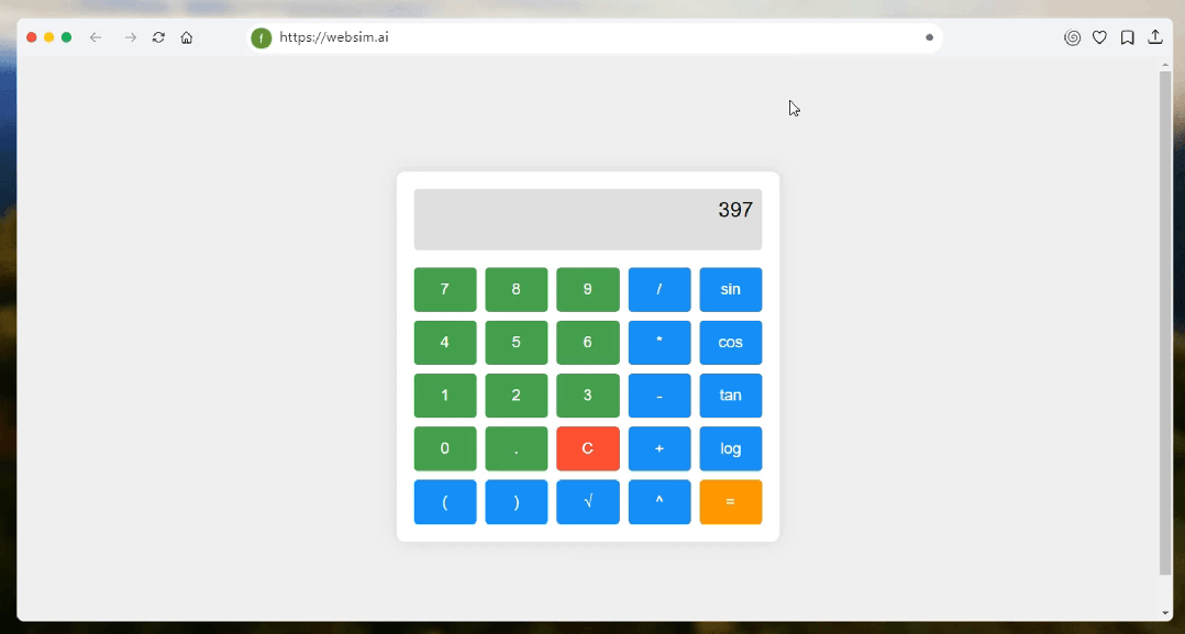 比如直接在输入框里输入科学计算器,Websim.ai就可以根据指令制作出科学计算器的应用界面: