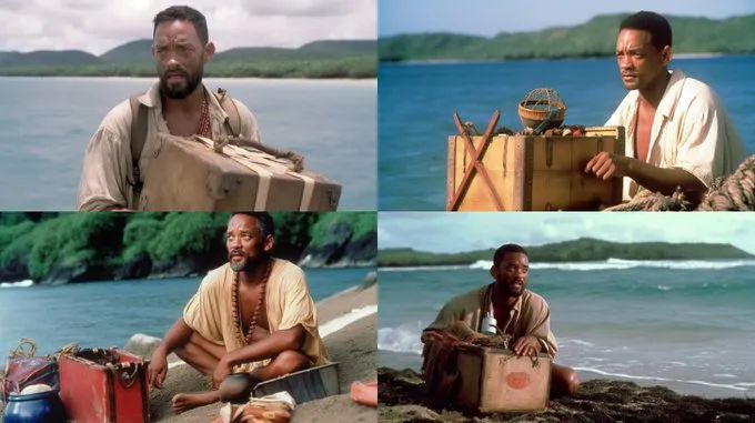 Will Smith as Forrest Gump in Cast Away: Life is Like a Box of Wilsons. --ar 16:9