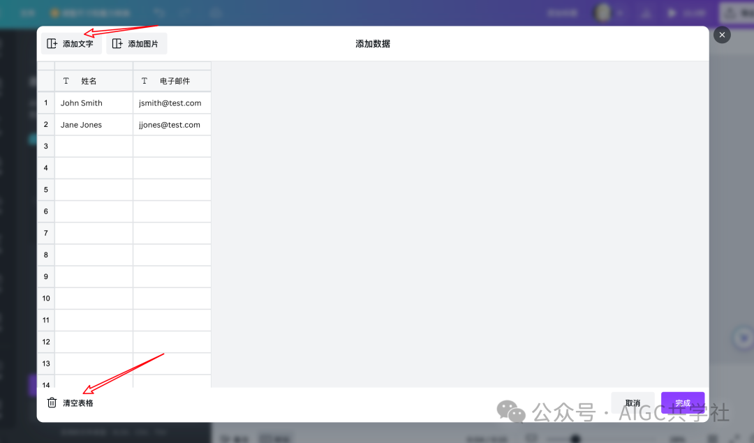 先清空表格,添加文字,将我们的文案录入到表格中。