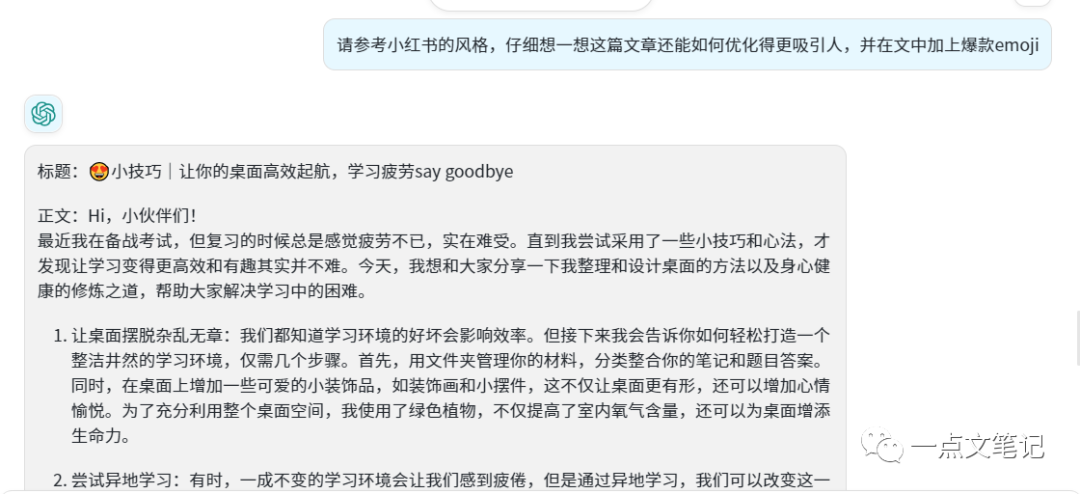 很不错了,但是我觉得还是可以再继续优化,我是这样下prompt的:请参考小红书的风格,仔细想一想这篇文章还能如何优化得更吸引人,并在文中加上爆款emoji