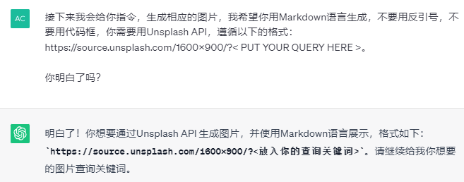ChatGPT做的事情是根据你的问题生成一个特殊的Unsplash图片链接,这个链接就是图片的地址。